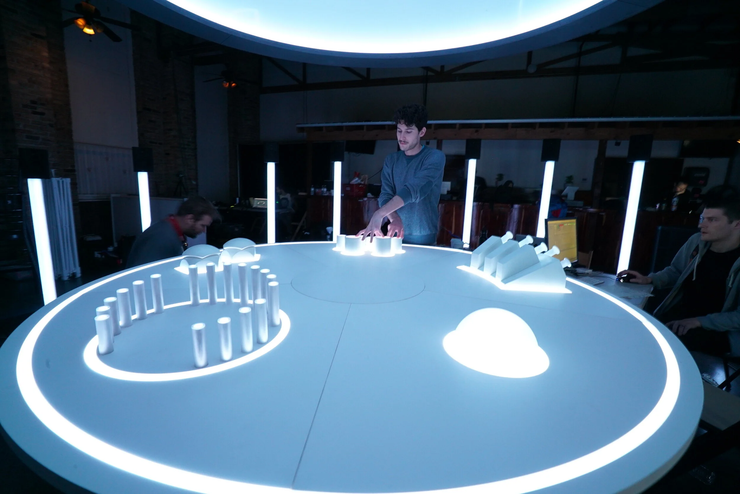 The ARC is an interactive music experience leveraging our experience in light, music, interaction, and physical design. It was developed for Deloitte Digital who came to us with the question “What is the future of music?” as a prompt for their presence at SXSW 2016. We focused the concept for the experience around a collaboration between artist and audience, enabled by a series of unique tactile instruments.