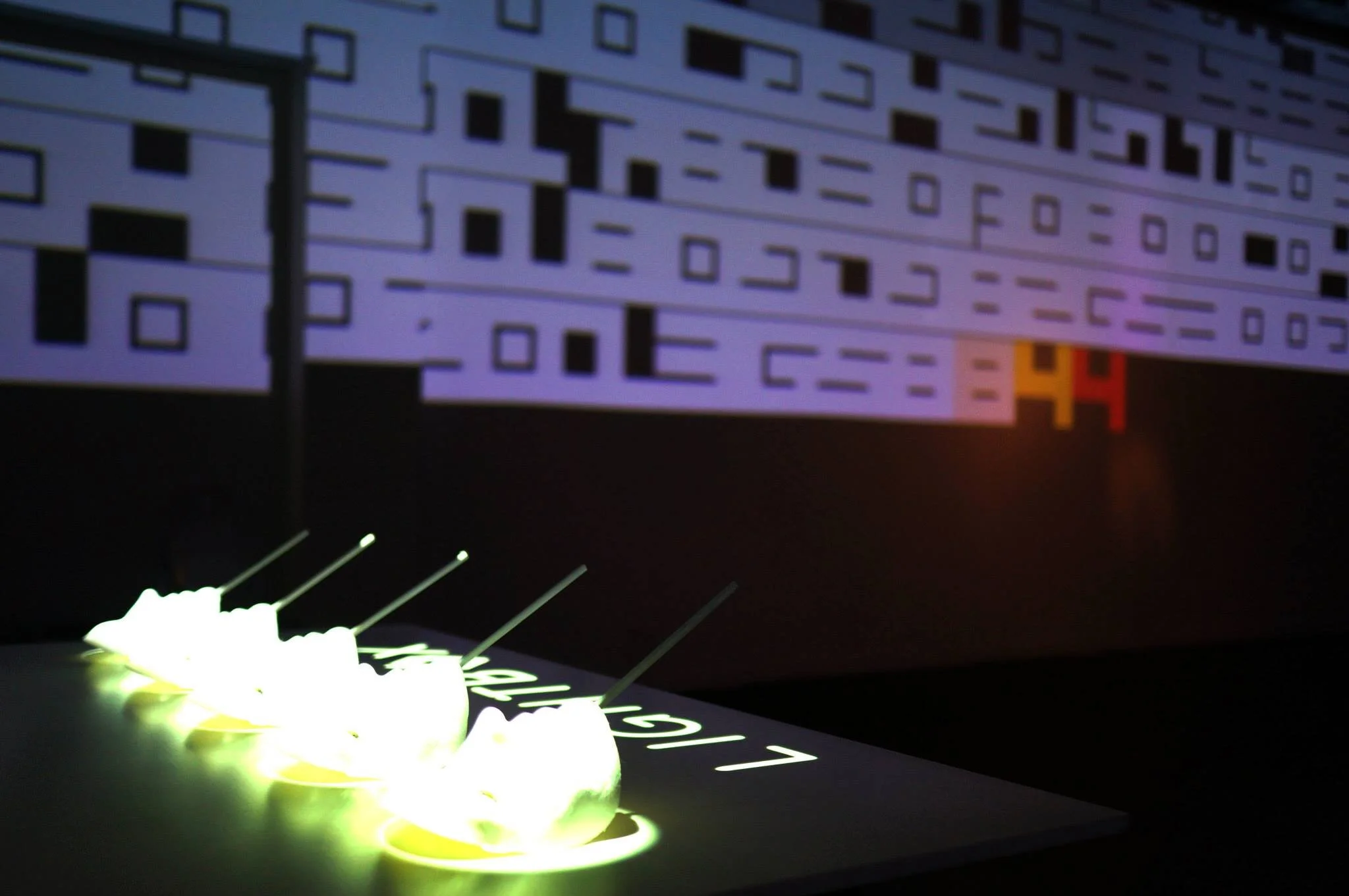 For artist Ashley Zelinskie's opening at Lightbox, Gabe collaborated with her to create an animation that would immerse the viewer in code by placing them in the “brain” of a computer. As the code fills up the room, wrapping the viewer in text, the computer struggles to continue processing the data. Glitches appear creating beautiful digital disasters. The computer finally crashes in a blaze of glitch glory. The source of the data used is from a blank video file.